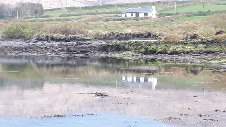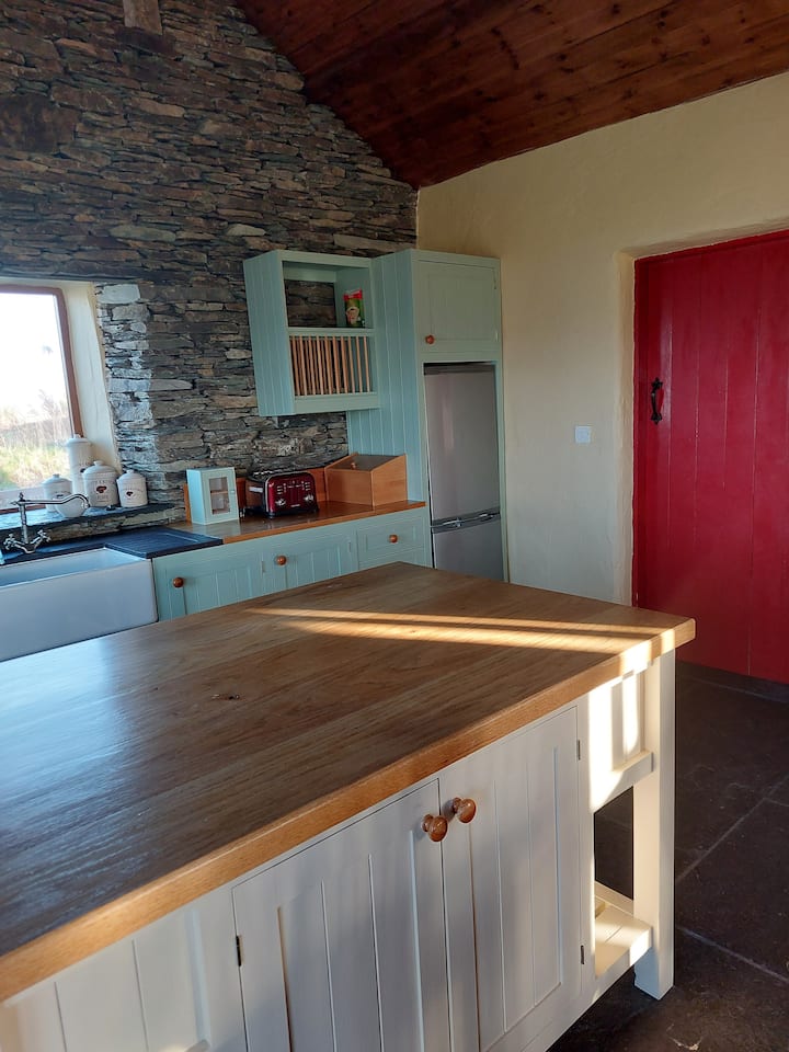 An old & charming fisherman's cottage restored to a standard of luxury with a spacious living area boasting beamed ceilings, a hearty stone open fire place & magnificent sea views. It sits on its own one acre site sweeping down to the sea. Located on the Skellig Ring and Wild Atlantic Way.