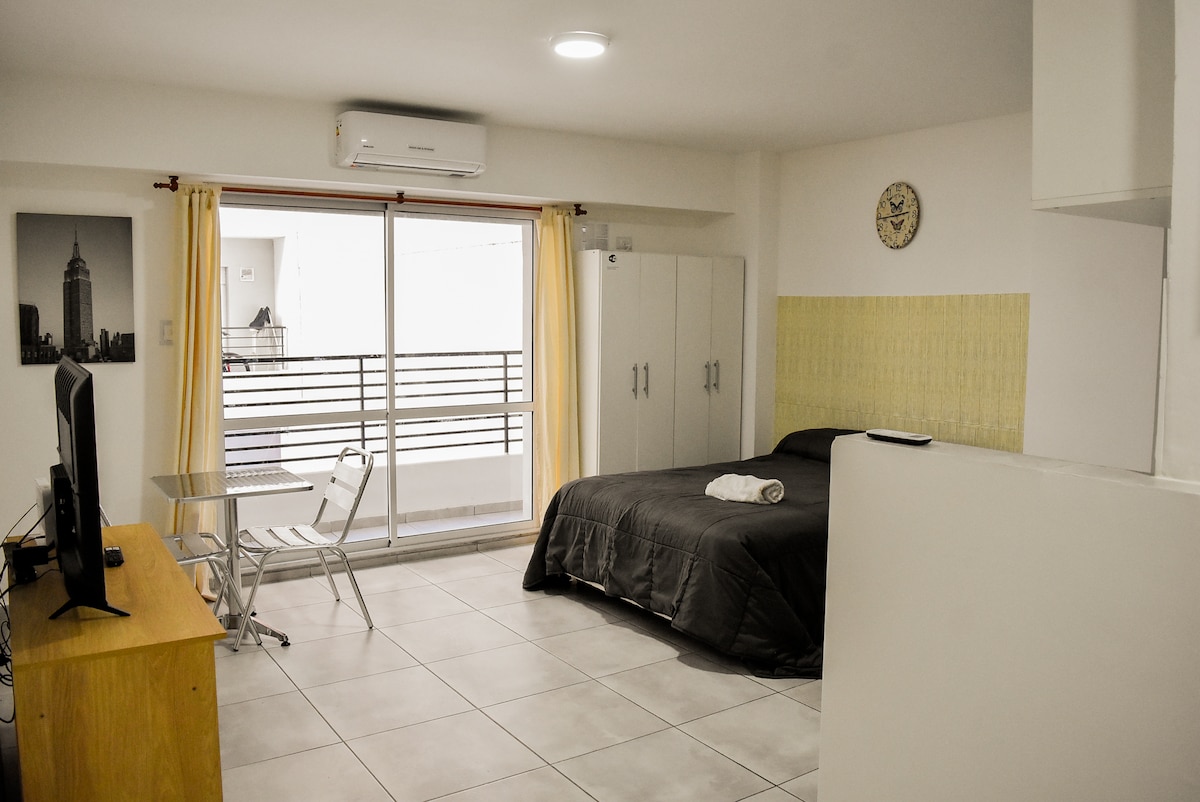 Our comfortable studio is located in the heart of Rosario city. Suitable for two people, the apartment is very close to shopping areas, places to eat and drink at night and several medical attention centers. It's also at walking distance from areas of interest like Paseo Pellegrini, Oroño Boulevard and Independence Park.