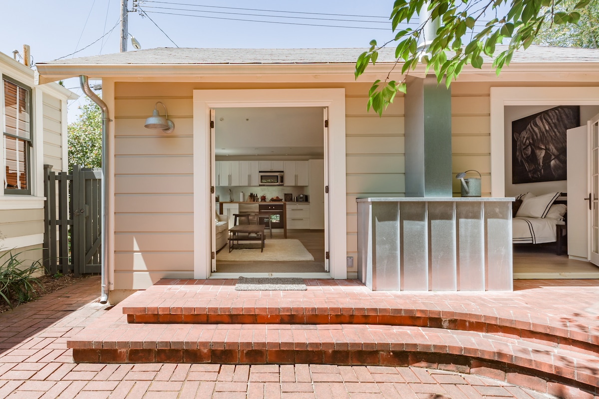 Your private Healdsburg retreat—just a 4-minute walk to downtown wine tasting rooms, restaurants, shops, and the Farmers Market. This stylish guest cottage offers parking in front of a private entry, garden with al fresco dining, BBQ, lounge area, and a fully equipped Pilates studio. Designed with international contemporary art and thoughtful touches, it’s perfect for a weekend escape or a longer stay while house hunting.