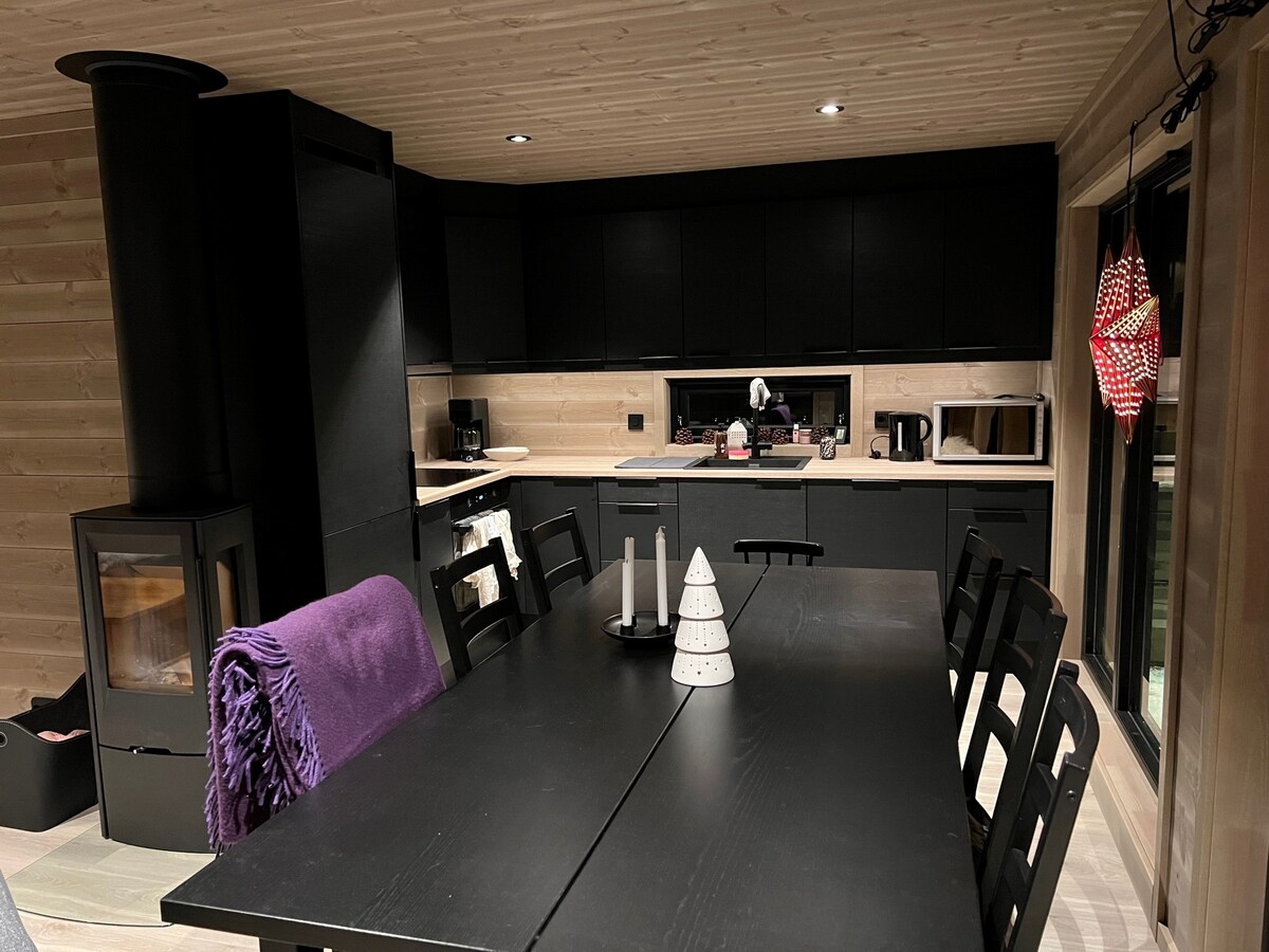 The cabin is about 125 sqm and has good standards. 3 bedrooms with family beds and single beds. 2 bathrooms, one of which has a sauna. Living room with TV. Large living room-kitchen with wood stove and panoramic views of Brokke Alpinsenter. Tiled patio with bench, table and fire pit. Towels and bed linen must be brought and it is expected that the cabin is left tidy and cleaned. Code for key box is available before arrival.