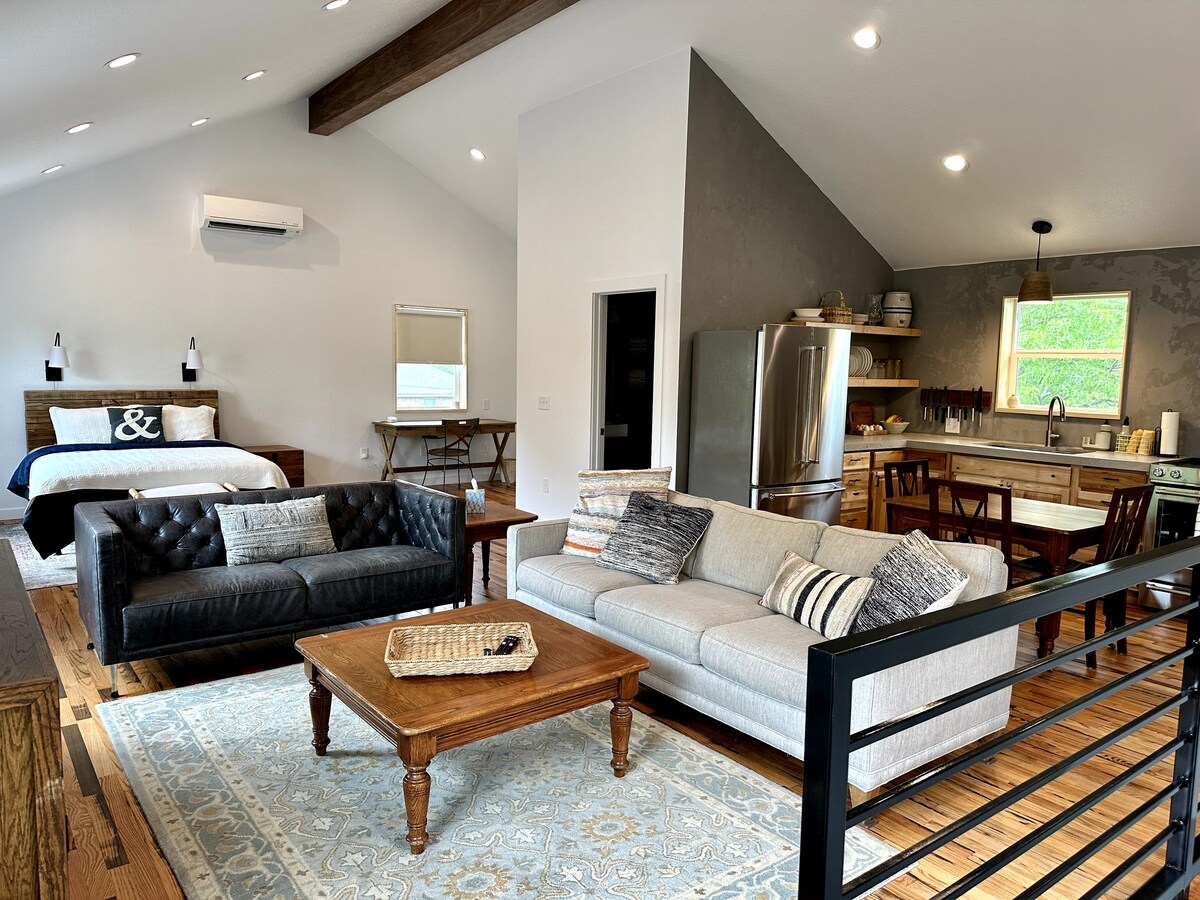 Enjoy your stay in Stephenville at our peaceful and stylish studio apartment. Located on our property, you'll have access to our private backyard and all of its amenities including a workout space, koi pond, fireplace and grill. This newly built space (April 2023) is furnished with brand new appliances, a full kitchen, refurbished wood floors and high ceilings. Within walking distance of Tarleton State University, it is ideal for parents or alumni. We look forward to your stay!