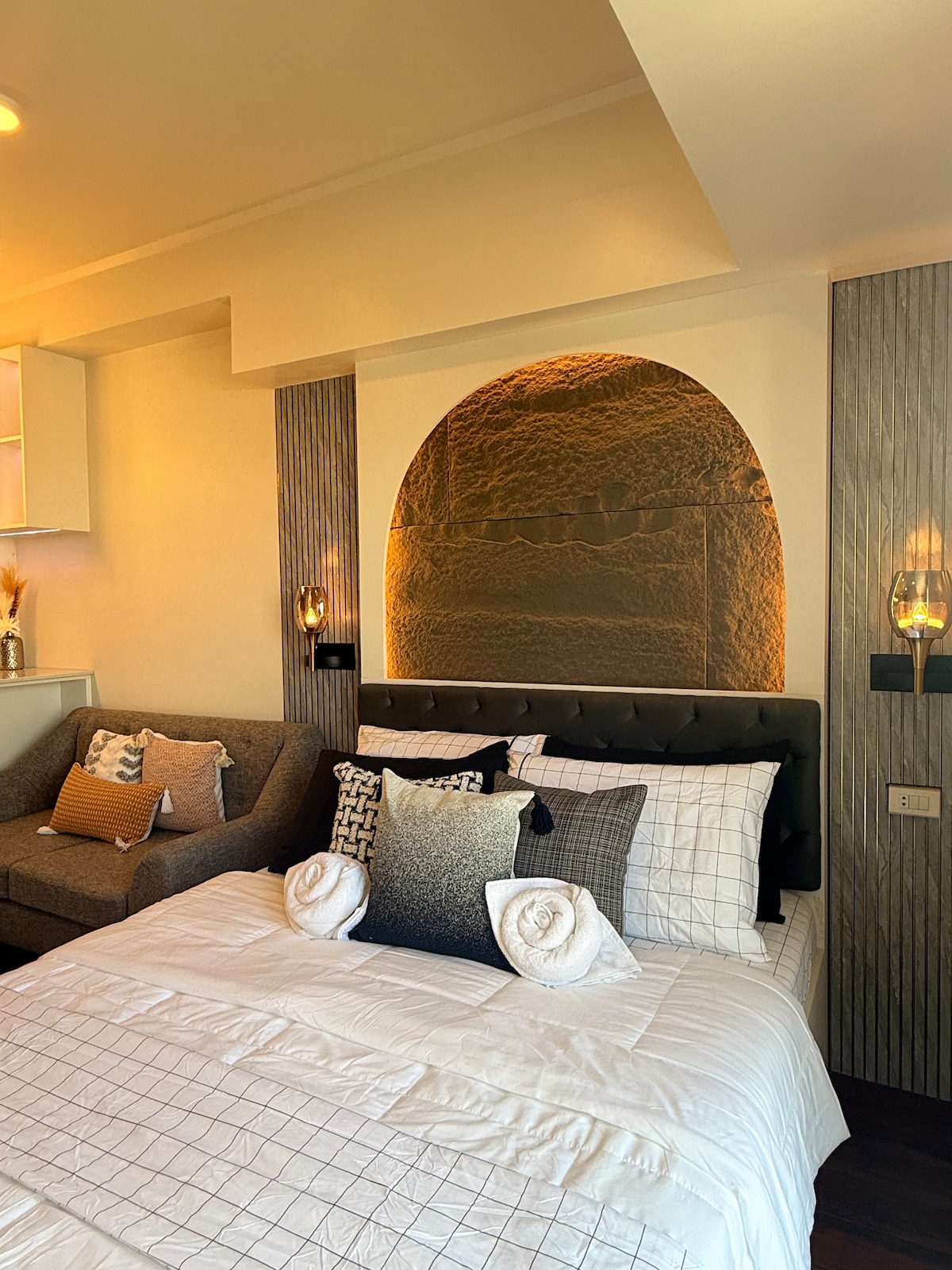 Welcome to your stylish city escape at Aeon Towers, one of Davao’s most sought-after residences. This chic 26th-floor studio offers modern comfort, smart design, and beautiful city skyline views, ideal for solo travelers, couples, business guests, and long stays. Enjoy fast WiFi, Netflix, and a prime location steps from Abreeza Mall. A cozy, well-equipped space designed for both work and relaxation.