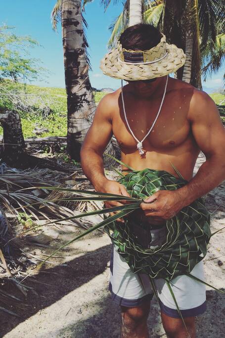 Coconut hat weaving class