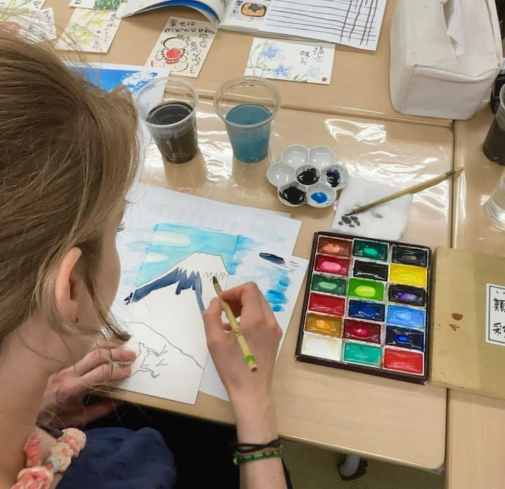 Kanji calligraphy workshop with a local artist