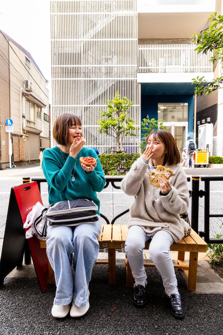 Sample specialty bread in old-town Yanesen