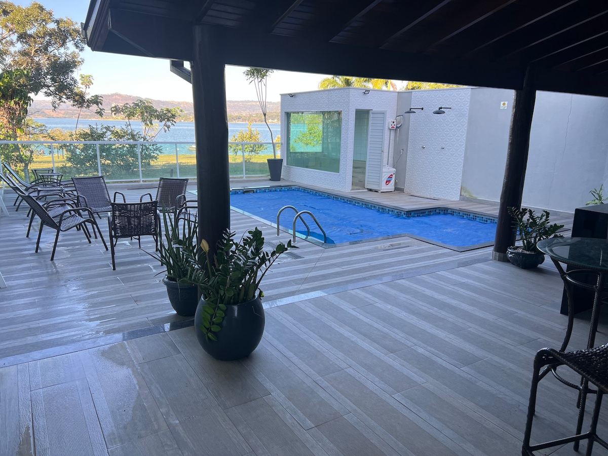 Come and meet and rest in an amazing house. The house is located in a gated condominium, has 5 suites, heated pool with hydro, sauna, equipped kitchen, dishwasher,barbecue, air fryer, coffee maker, air conditioning and security cameras. The condominium has a restaurant, beach tennis courts, soccer field, exclusive pier for fishing,pier for vessels, park for children and 24-hour security guards Exclusive rental for families and small groups, no parties and loud sound.