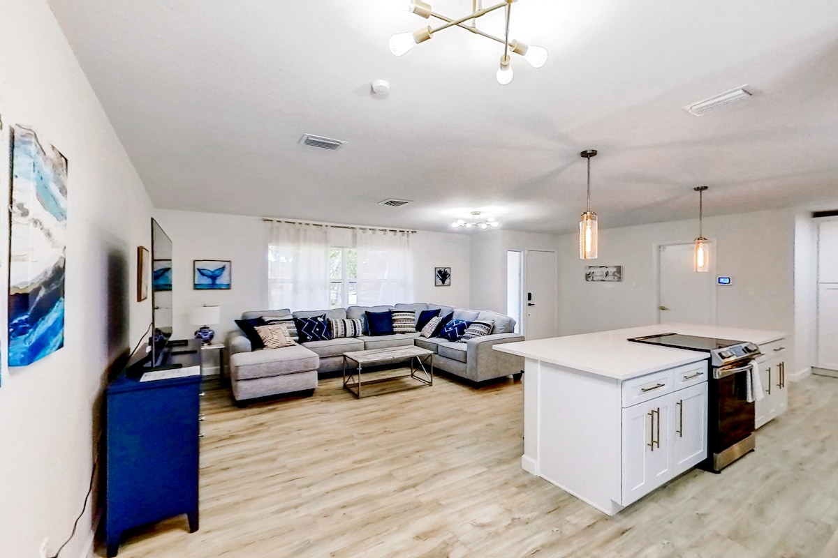 Newly renovated home in the quaint town of Safety Harbor. • Less than 1/2 mile to Main Street (Downtown) • 1 mile to Safety Harbor Spa • 1.5 miles to Ruth Eckerd Hall • 3 miles to Philippe Park • 10 miles to Clearwater Beach • 15 miles to Tampa Airport Amenities • Outdoor Shower • Private fenced in backyard • Fully equipped Kitchen • King-size Bed in Master • Fast Wi-Fi w/ desk in 2nd Bedroom • Beach Towels