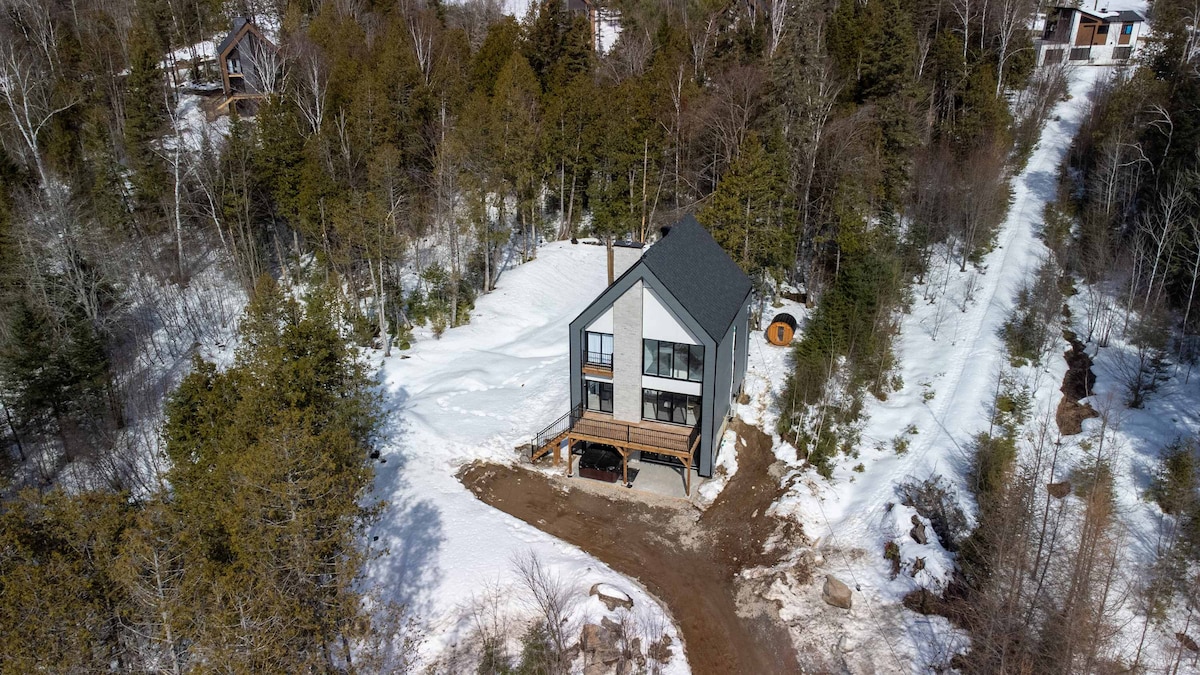 CITQ #302690 Beautiful cathedral roof cottage, waterfront (paddle board, kayaks, pedal boat), above-ground pool, hot tub, outdoor fireplace (wood included), 3 queen bed bedrooms + 1 double bed (family room), fully equipped kitchen (Nespresso, automatic filter coffee machine, air fryer, raclette, fondue, waffle maker, panini grill, blender, etc.), BBQ, ping pong, air conditioning, unlimited Wi-Fi, heated floor on the ground floor. Hiking trails within walking distance of the chalets and multiple activities nearby.