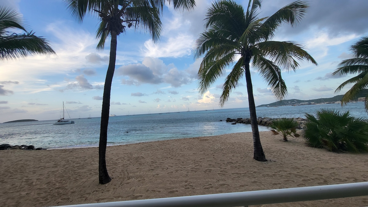 "Petit Paradis" (Little Paradise), a genuine Caribbean getaway. A spacious one-bedroom Beachfront apartment right on beautiful Simpson Bay Beach and in the center of all the happenings. Relaxing terrace, five stairs away from the Beach, and within walking distance from great Restaurants, Nightlife, Activities, and Watersports. This modern, fully furnished, and equipped apartment has everything you need for a dream vacation. Hope to invite you soon in our Paradise, Elodie