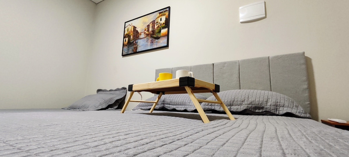Relax with the whole family in this cool and quiet accommodation, easy access in a gated community, with access to the river and green areas with kiosks and barbecues.