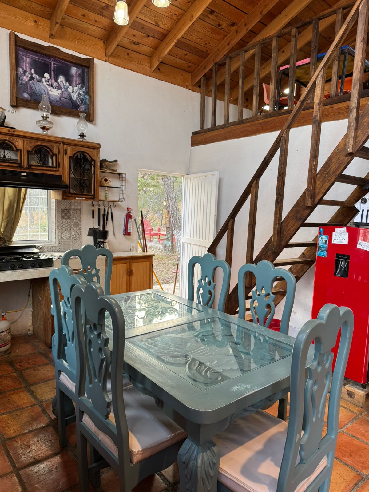 Fully-equipped cabin in the mountains in the El Portal subdivision, heading towards San Antonio de las Alazanas, 4.9 km from Highway 57 to Matehuala, 3 floors, palapa, barbecue, 5 bedrooms and common areas where up to 15 people sleep comfortably, central heating, electric heaters, boilers for showers, plasma screen, Wi-Fi Internet...