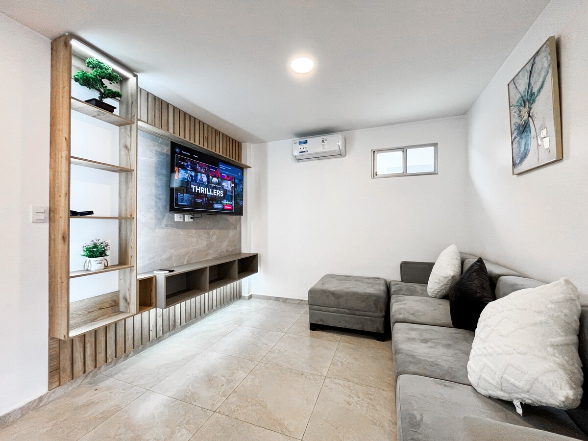 A space created to make you feel at home, excellent for gatherings with family or friends. Five minutes from El Dorado Mall, Piazza Joya, Piazza Villa Club. Close to all the tourist places, business city and important places in the city of Guayaquil and its surroundings. Accommodation fully-equipped with: 1. Home automation. 2. TV, living room and main room installed with Netflix, Spotify and other apps. 4. Grill 5. Fully-equipped kitchen 6. Washing machine, dryer.
