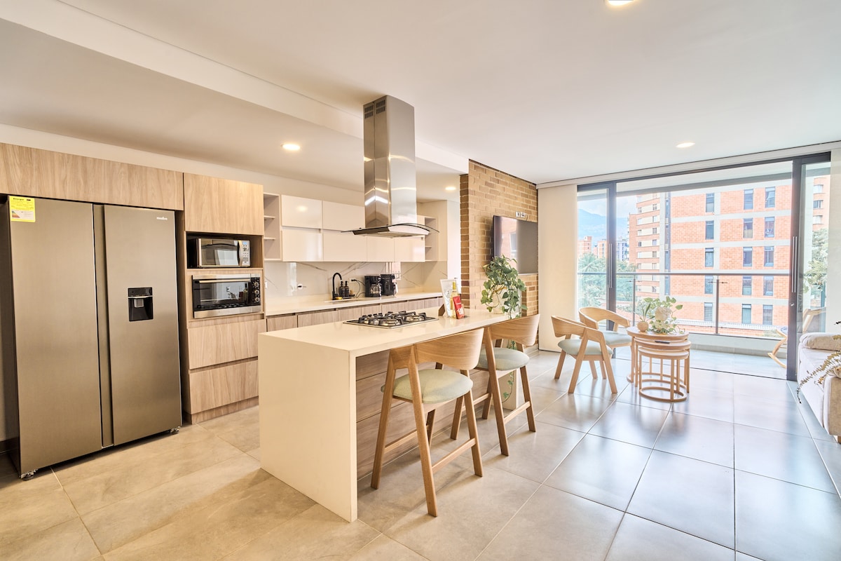 RECENTLY RENOVATED -High-speed internet great for remote work -Brand new A/C -Fully renovated Industrial design apartment -King size bed -Breathtaking views of Medellín (trust me, worthwhile to stay here) -19th floor -Unbeatable location in Poblado near to Provenza and Lleras Park -Modern amenities -Spacious living area -Smart TV x 2 -Fully equipped kitchen -Washer & Dryer Tower -Pool -Gym -Coworking space -Restaurant inside the building -Private parking -Self check-in -24/7 Security