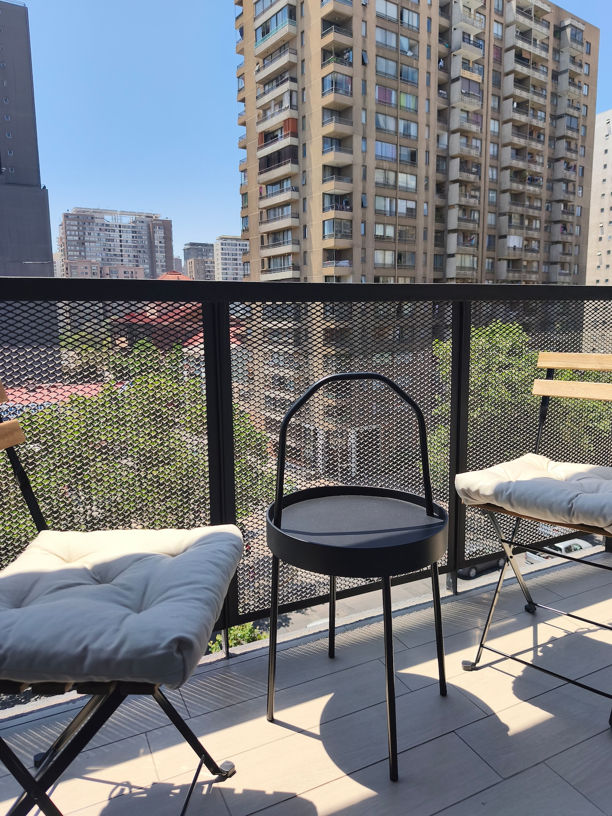 Precios de promoción por inauguración!!! Disfruta Santiago desde un moderno y acogedor departamento en piso 7, con terraza privada perfecta para un vino al atardecer. Ideal para parejas que desean tener una escapada o grupos de 3 personas , equipado con cama matrimonial y sofá cama, en uno de los barrios mejor conectados: a pasos del Metro Parque Almagro y Universidad Católica. A 15 mins en auto del Movistar Arena. Ambiente único para descansar, escapadas y explorar la ciudad.