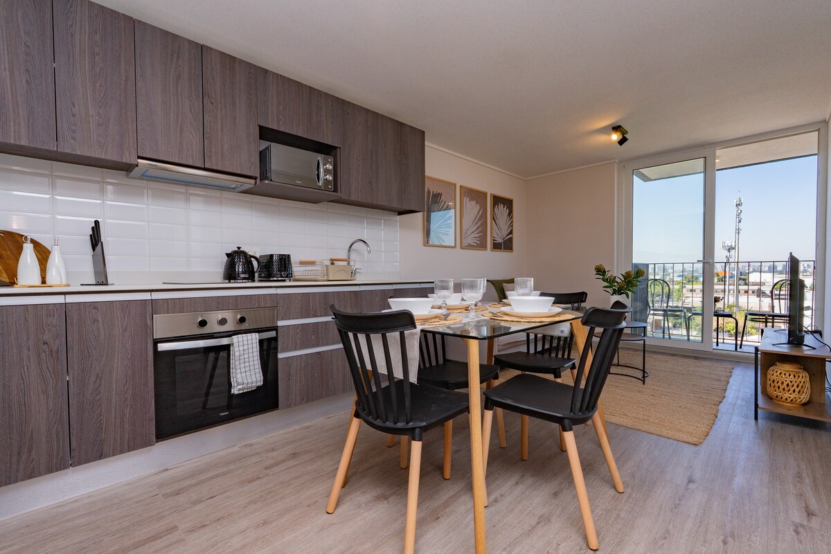 Welcome! • Enjoy easy access to much of Santiago via nearby main avenues. • Rest comfortably on a bed designed for your relaxation. • Parking is included, and you can ask us if you need an extra spot. • Just minutes from Estadio Nacional (Line 6) and Ñuble (Line 5) metro stations. • Close to shopping centers and supermarkets. • Fully equipped kitchen to cook whatever you’re in the mood for. • Security cameras in the building for your peace of mind. • Modern 34m² apartment.