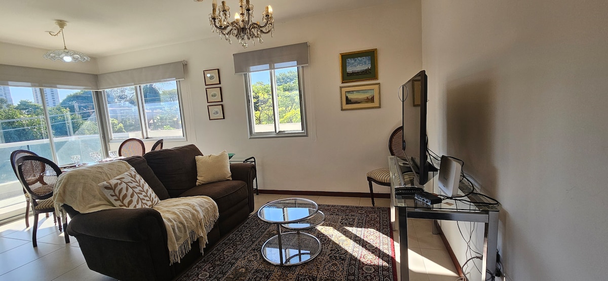 Brand new apartment in a luxurious building. It has its own 40m², with Smart TV, WIFI, and in the building you have all the amenities: Swimming pool with solarium, air-conditioned gazebo with grill, children's playroom, equipped gym, etc. It is a 5-minute drive from the capital's most valued corporate center, and a 25-minute walk. It is also an 11-minute drive to Silvio Pettirossi Airport It has a double bed + a sofa bed. In total, up to 3 people can sleep.