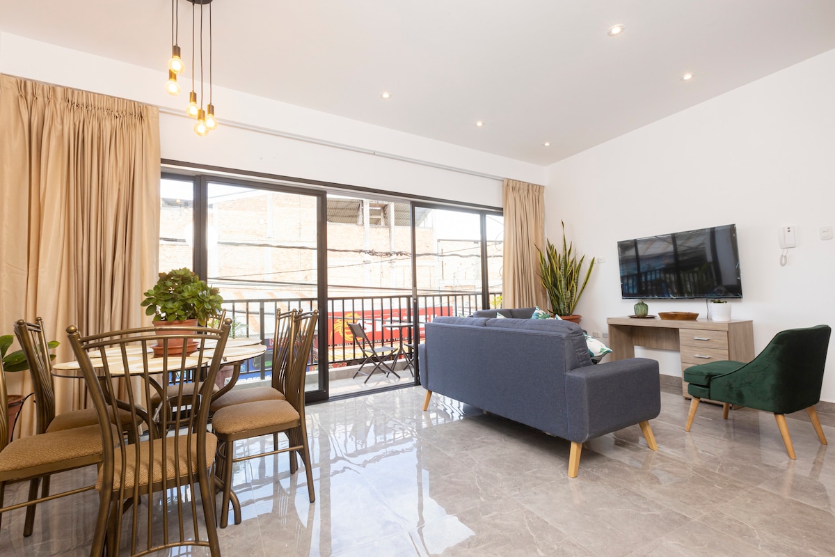 Exclusive brand new apartment with panoramic view fully implemented for a stay full of comfort and luxury. It is located just 3 blocks from the central square, close to restaurants and all kinds of businesses. You'll have everything within reach in a 100% safe area. We have AIR CONDITIONING so that the city's heat doesn't overwhelm you, and high-speed internet so you're always connected.