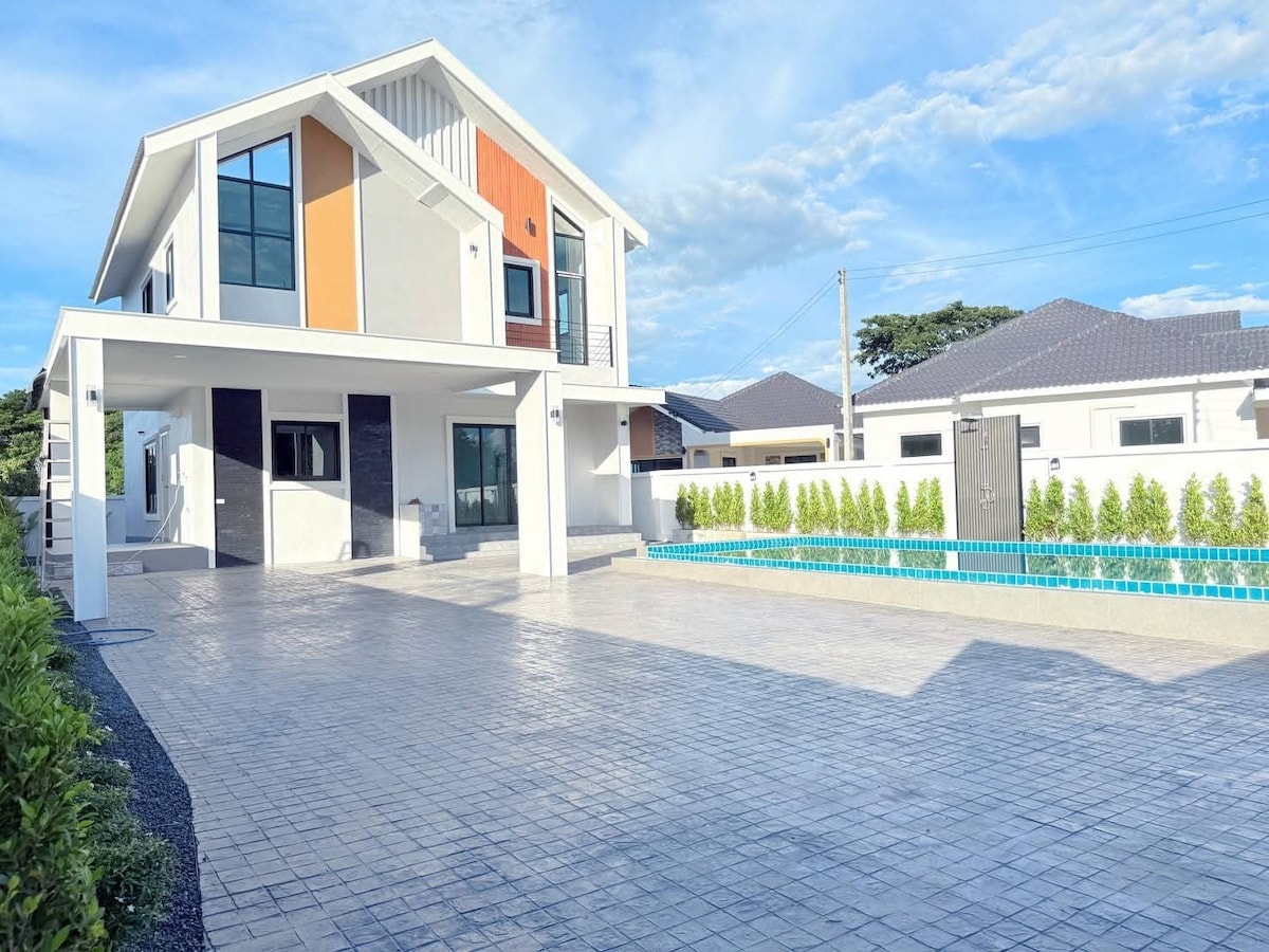 The perfect Airbnb to explore Thai culture in Baan Tawai, markets at Kad Farang, or find your next home with numerous neighborhoods and school nearby. Newly built in 2023, this location has all the amenities you can ask for with a comforting minimalist design มีสระที่ใหญ่และเงียบ แทบจะเป็นส่วนตัว คิดค่าบริการ100-120บาทต่อท่าน