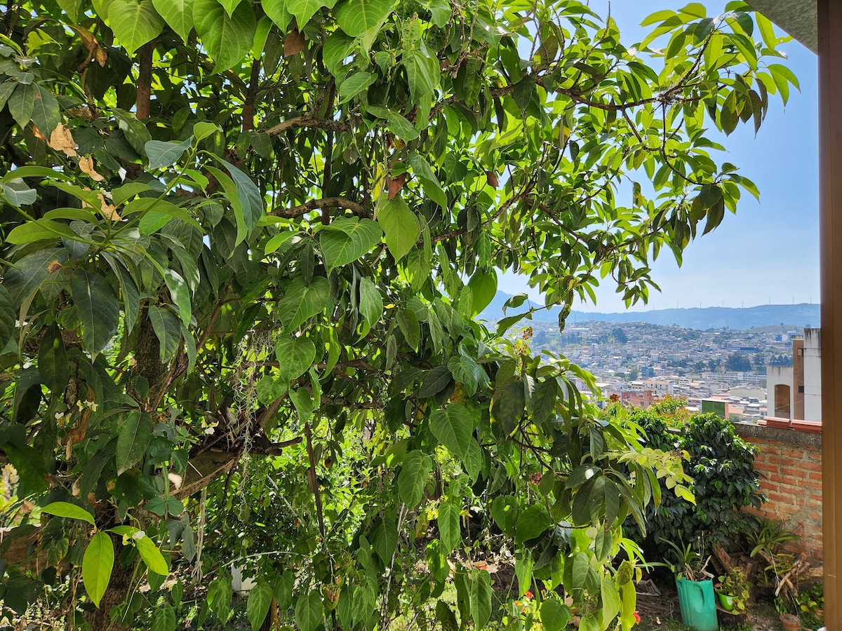 Come and experience sustainable living in harmony with nature. Let your senses be delighted in the beauty of tropical landscapes & andean mountain vistas. This private 2 bedroom apartment is complete with private kitchen, bathroom, & outdoor patio. The main bedroom has a very comfortable queen orthopedic bed, with space for a second single bed on request. The second bedroom has a single bed, or can be converted into an office or therapy space on request