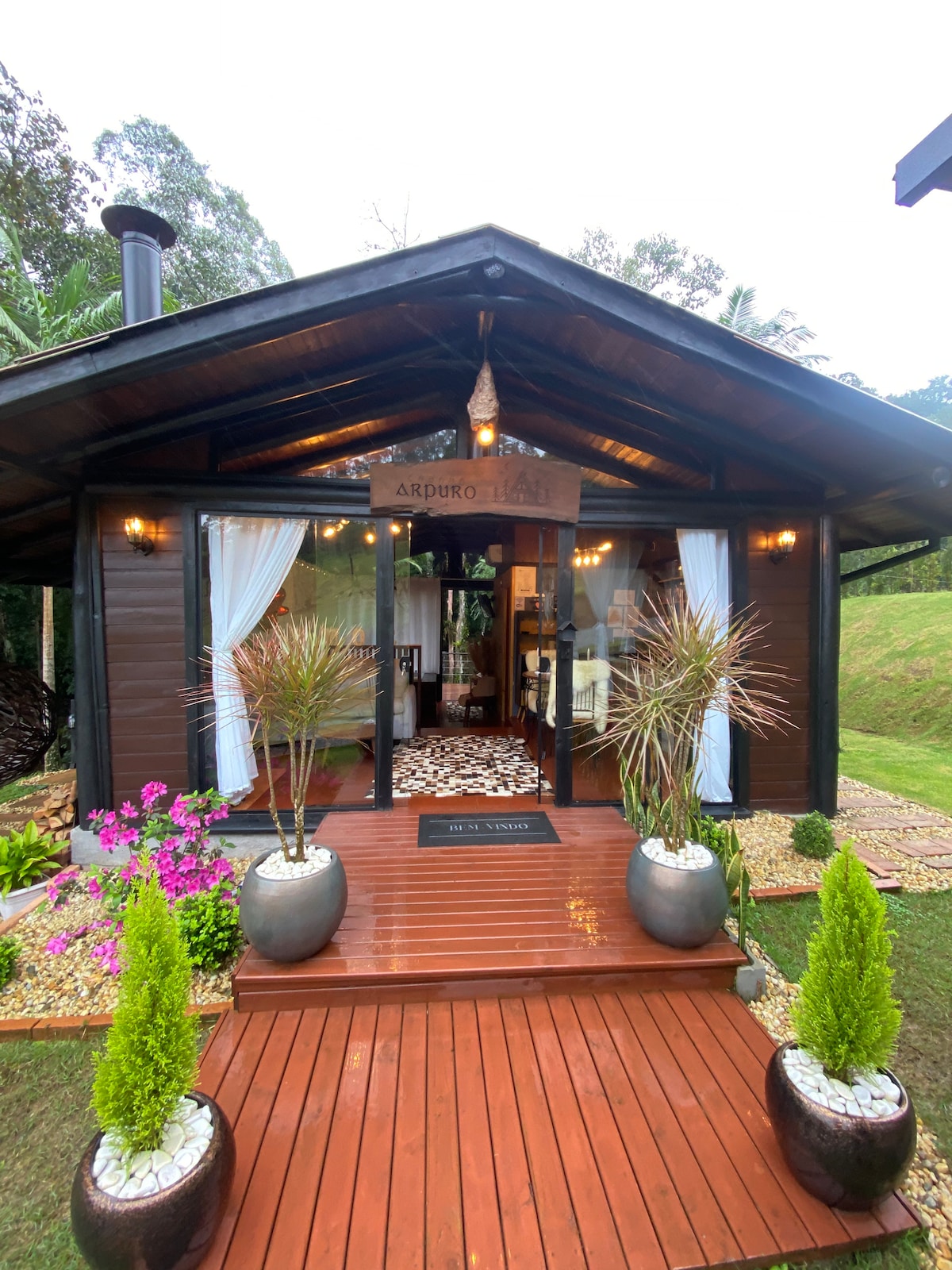 We are the @greenhouseexperience An exclusive getaway in the middle of nature, just 3 km from Jurerê International. Our chalet, perfect for couples, offers the essential comfort for an unforgettable experience of connection with nature. Relax on the tree-lined balcony, enjoy the dry sauna, the outdoor jacuzzi and warm yourself by the wood-burning fireplace. The property also has a residential unit and another cabin, where there is a therapeutic space that serves guests and visitors.