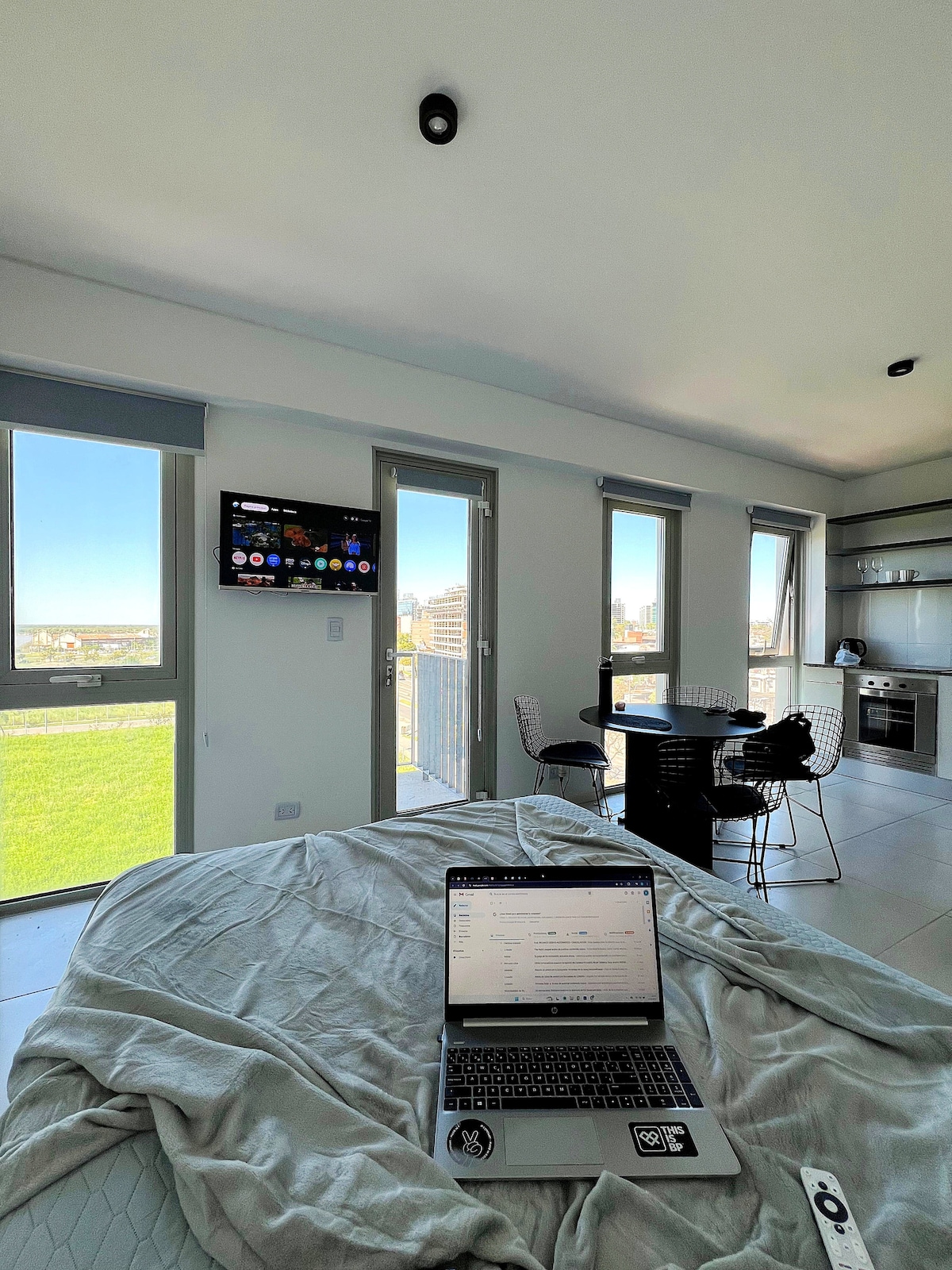 A bright, modern and cozy space, ideal for 1-2 people. Located in Puerto Norte, with a balcony overlooking the river that invites you to relax The apartment has: - Smart TV and high-speed WiFi - Air conditioning - Equipped Full Kitchen - Bal with river views Building Amenities: SUM, sauna, gym, pool and terrace (under repair) Prime Location: A few minutes from the downtown seaside, the Shopping Alto Rosario and a wide gastronomic offer