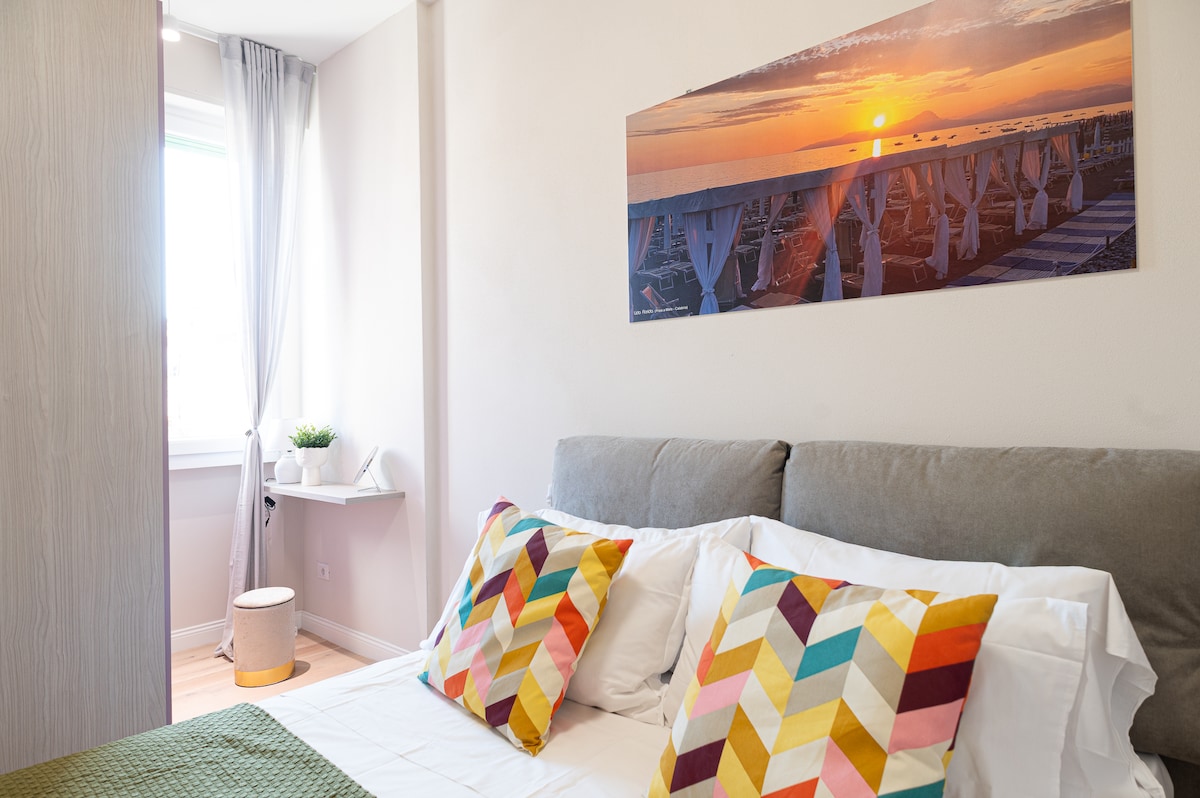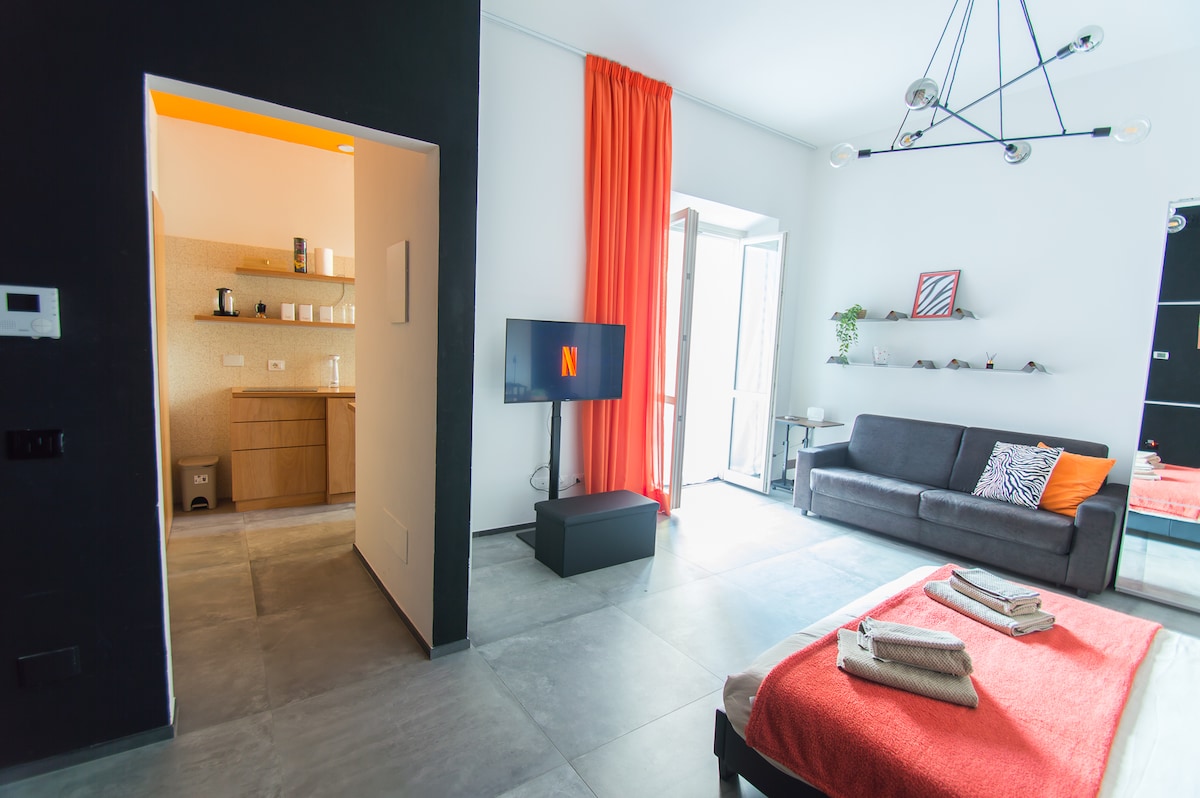 Appartamento di 55 mq ristrutturato e arredato con gusto e dalle stile raffinato e ricercato. La struttura è composta da un ampio soggiorno, una cucina attrezzata, una camera da letto, un bagno confortevole ed un balcone. Può ospitare comodamente 2 persone. I servizi aggiuntivi includono la connessione WI-FI ad alta velocità, una smart tv ( Netflix gratuito). Aria condizionata. Parcheggio a pagamento in strada e gratuito la notte e nel week end. I dispositivi di sicurezza sono attivi.