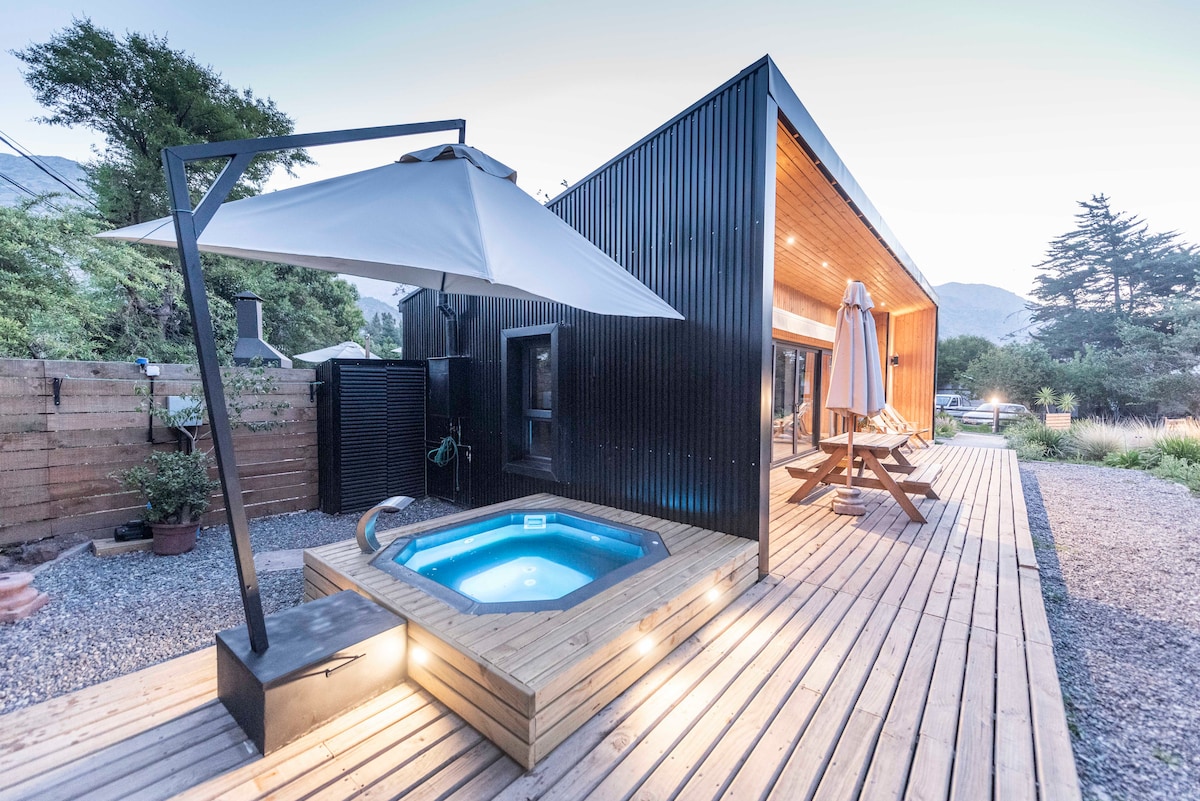 Cabaña Andes, we are located near Santiago in the foothills at 1,150 meters high, surrounded by sclerophyllous forest with incredible views of the valley, mountains and stars. We have a covered terrace, a natural slope suitable for bathing, a private pool that converts to an XL tub with 6,000 liters of water at 40°C, without schedules and with hydromassage. The cabin is private and has all the amenities and equipment to make the most of your stay and WiFi.