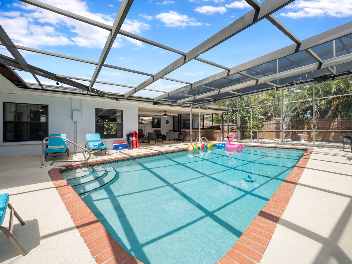Welcome to Sunny Palm Villa! This family friendly 3 bedroom 2 bathroom home with a heated pool is just the place you have been looking for. A wonderful place to unwind and relax by the pool or one of the nearby beaches. Conveniently located 20 minutes from Siesta Key Beach or Lido Key Beach. Only 15 minutes from University Town Center shopping, Mote Aquarium and Nathan Bendersen Rowing Park. The Legacy Bike Trail and famous Dutch, Amish restaurants in Pinecraft only 5 minutes away.