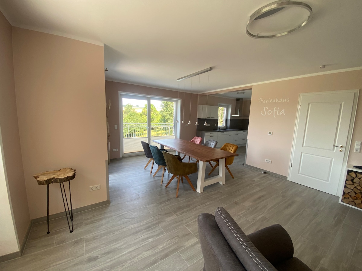 The spacious 80 m² apartment with 2 to 7 beds in our lovingly renovated half-timbered house above the rooftops of Ziegenhagen invites you to linger and relax. On the balcony, you can enjoy wonderful views over the forests. The imposing half-timbered house accommodates 12 nice people in 3 generations for many good conversations. Likewise, my catering, from which you can also have a delicious meal from time to time. In our foyer there is a library for lounging on cozy sofas.