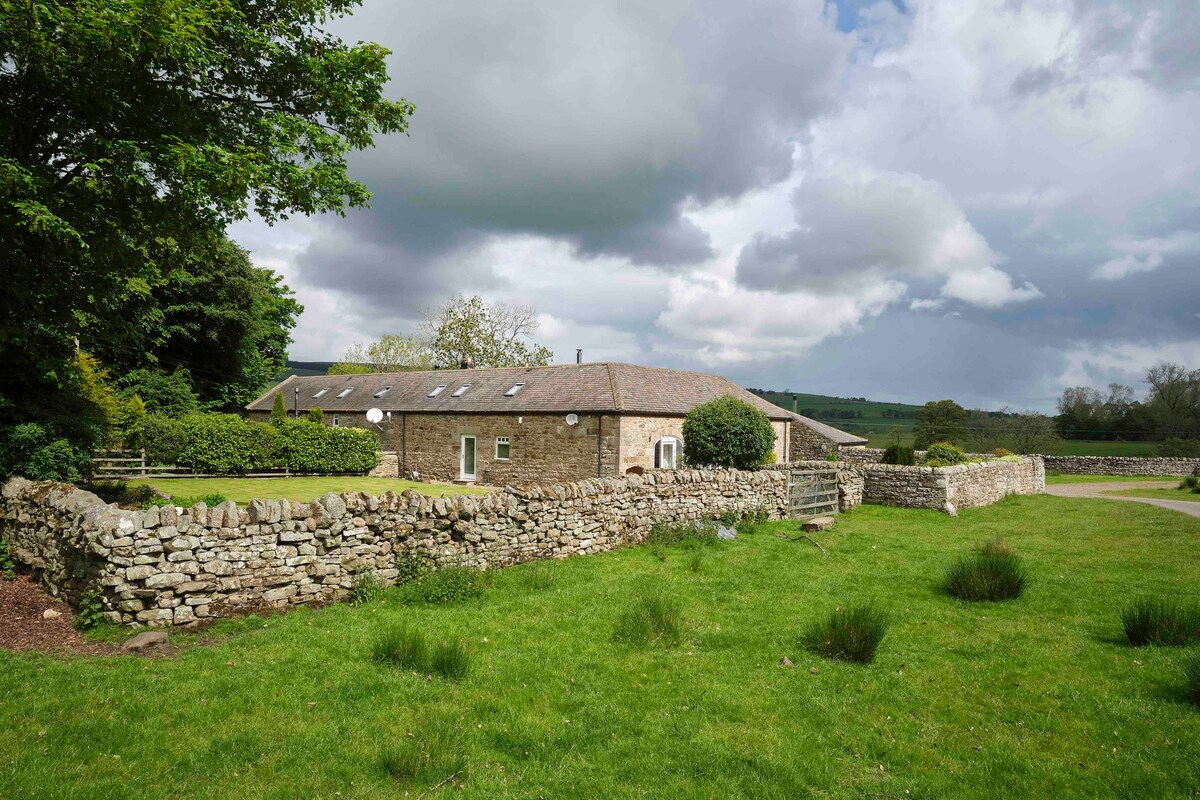 Lovingly converted, pet friendly barn set on a working farm with fantastic views across the Rede valley. Open plan living/kitchen area with log burning stove and flooded with natural light. A recent addition are daily visits from our local red squirrels. Spacious and modern with underfloor heating. Tastefully furnished and decorated with bathroom featuring a walk -in shower. Sleeps 4 comfortably in 2 rooms. Large secure garden for pets NOW HAS AN EV CHARGER - usage charge, no cable