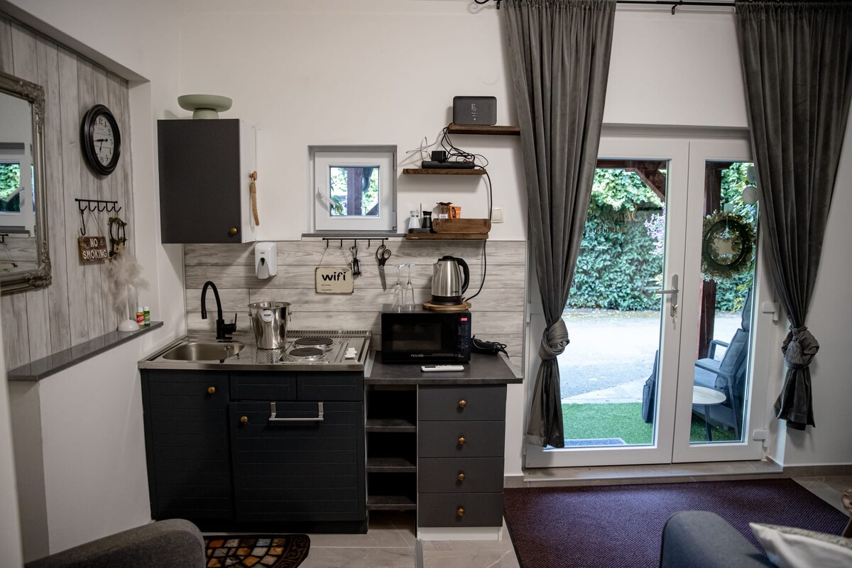 This small wooden house is located in a small village Poljanak only 8 km from the main entrance of the National Park Plitvice Lakes (Entrance 1). The apartment is suited in quite and peacefully area and pure nature. You can spend time resting in the large garden where you can enjoy in nice view of river Korana canyon, mountains and hills. The apartment is well equipped including everything you need for your stay. Interior is mostly covered in wood as the everything arround apartment.