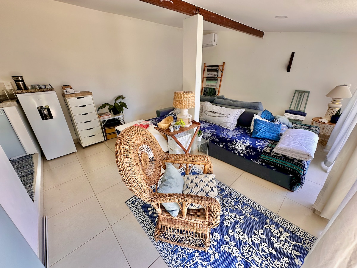 Bem-te-vi Suite: Your spacious retreat just steps from the sea Imagine waking up and, within a few minutes of walking, feeling the sand under your feet and the freshness of a tranquil beach. Designed for your maximum comfort and relaxation, our suite is a spacious and private space, perfect for recharging your batteries. Queen-size bed with orthopedic mattress for a restful night's sleep. Air conditioning, ceiling fan, private bathroom, TV, and Wi-Fi.