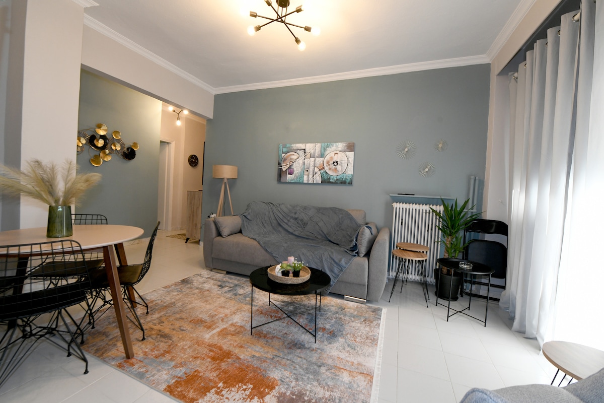 Discover Multispace, a comfortable & creative smart home in Serres. Just 3 minutes by car from the city's Liberty Square. Recommended for creative groups, travelers & professionals. ⏱️ Reservation needs 2 days notice. The space features: - Free parking - A large living room, 2 toilets, 2 rooms & a balcony - 1 double-bed, 1 wall-bed, 2 sofa-beds - Equipped kitchen, oven, microwave, coffee maker - A/C, central heating, mosquito screens, whiteboard - TV & PC monitors