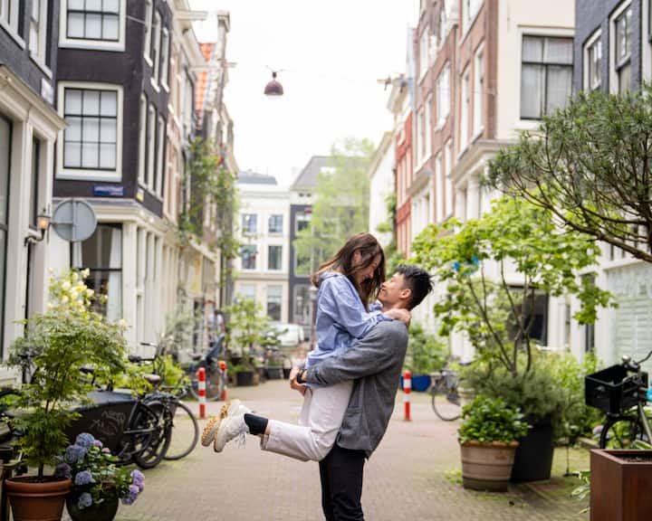 Explore guided posing in multiple Amsterdam neighborhoods and the city’s most photogenic spots. We share a link with all the raw photos within 1 day so you can choose your favorite 40 for editing. Your selected 40 edited photos are delivered within 4 days.