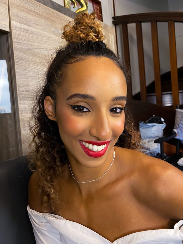 Natural makeup that elegantly highlights facial features, accompanied by a classic and refined hairstyle: soft brushing, curls or wavy, according to your desires.