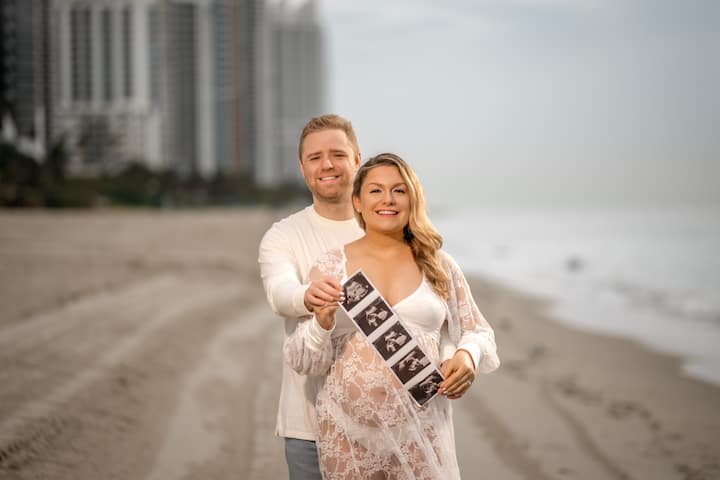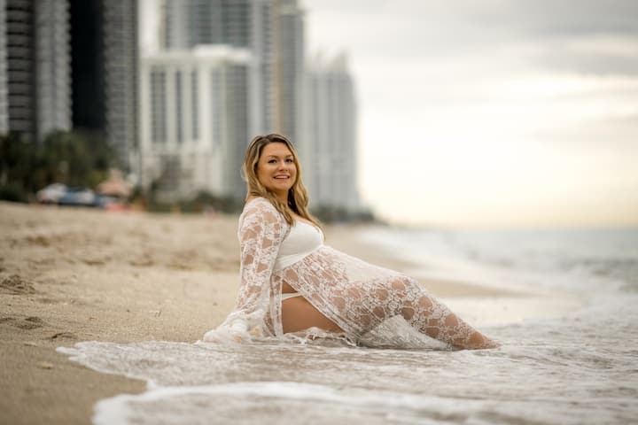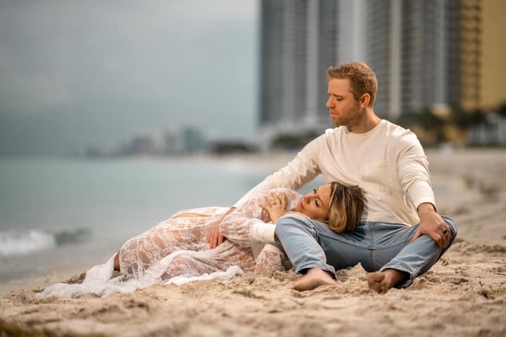 Relax and pose for pictures on the sands of Miami Beach with its turquoise waters in the background. Receive unlimited digital images.