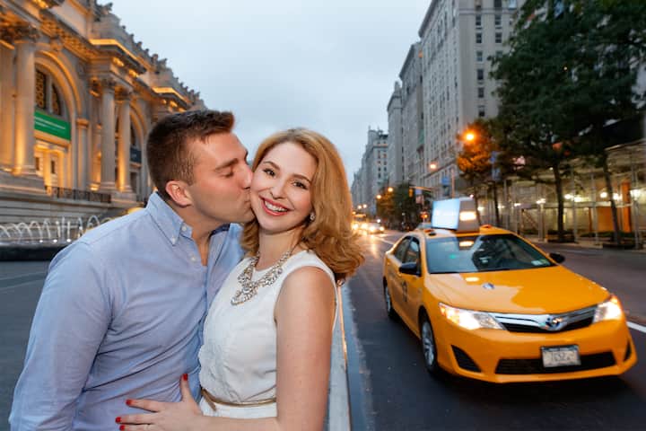 Couples photo session to make the day unique and extra special against iconic NYC locations. Includes guidance and edited photos for download from online gallery