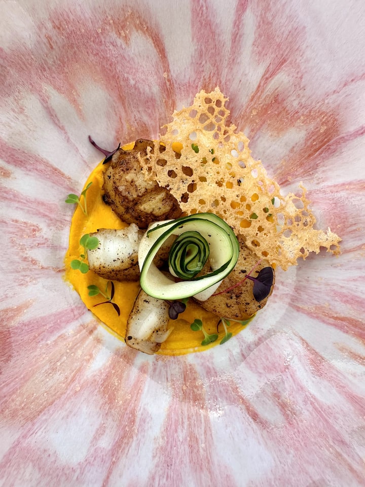 The ultimate experience: a bespoke 6-course tasting menu. I design each dish according to your wishes, for an exceptional dinner worthy of a gourmet restaurant, directly at your home. Live cooking, exchanges, flavour combinations and careful presentation: an unforgettable moment between travel and haute cuisine.