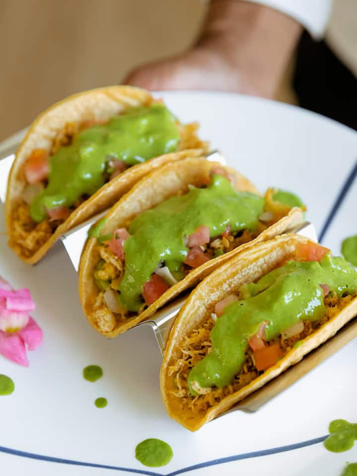 Chef JustNCase will travel from Los Angeles to your location. Pricing includes travel fee. Enjoy high-protein vegan tacos served with fixings like guacamole and handmade cilantro dressing. Available for up to 10 guests, this menu is prepared at an Airbnb or preferred location.