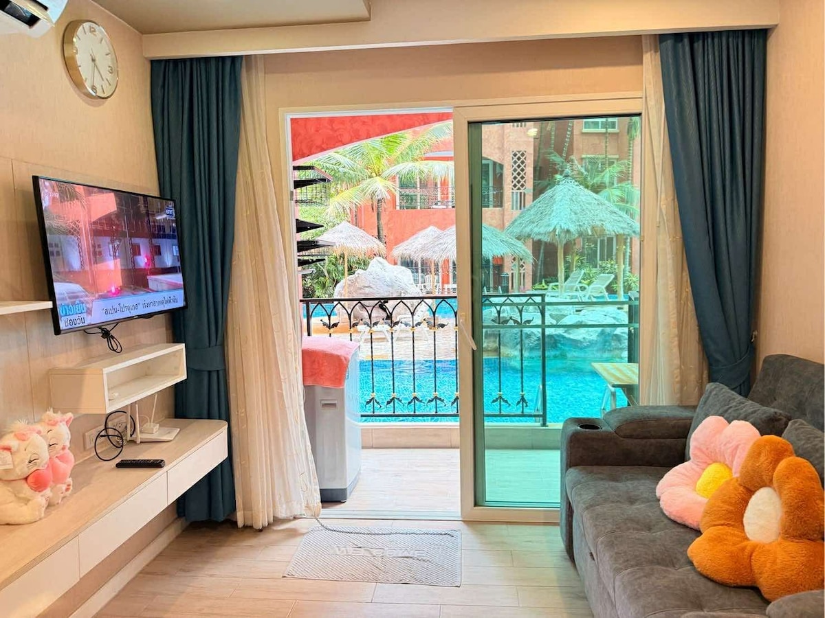 Suite, close to walking street and sand beach, outdoor pool, night market 300 meters away, 24 hours 711 supermarket and money exchange at the door, motorbike rental.