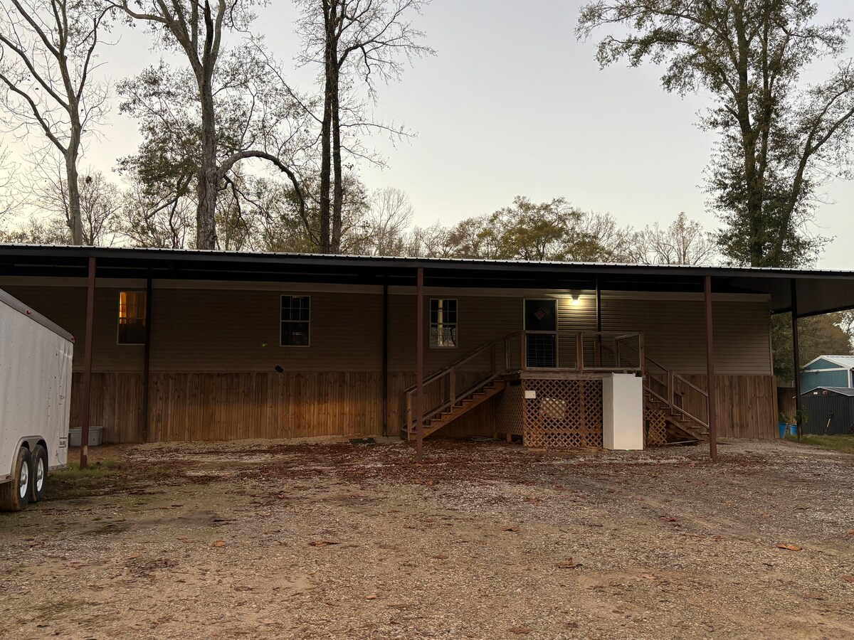 We host family, friends, hunters, fisherman, constructions crews, etc. We try to accommodate everyone. We are directly on the Bushley Bayou. You can look out the back door and see the water. We offer free access to our boat ramp. Guest always compliment the big pavilion built over the camp. It offers plenty of covered parking and a place to hang out. If you're looking to stay an extended time message us for best deal. The camp is fully stocked. We love our not so fancy fishing and hunting camp.