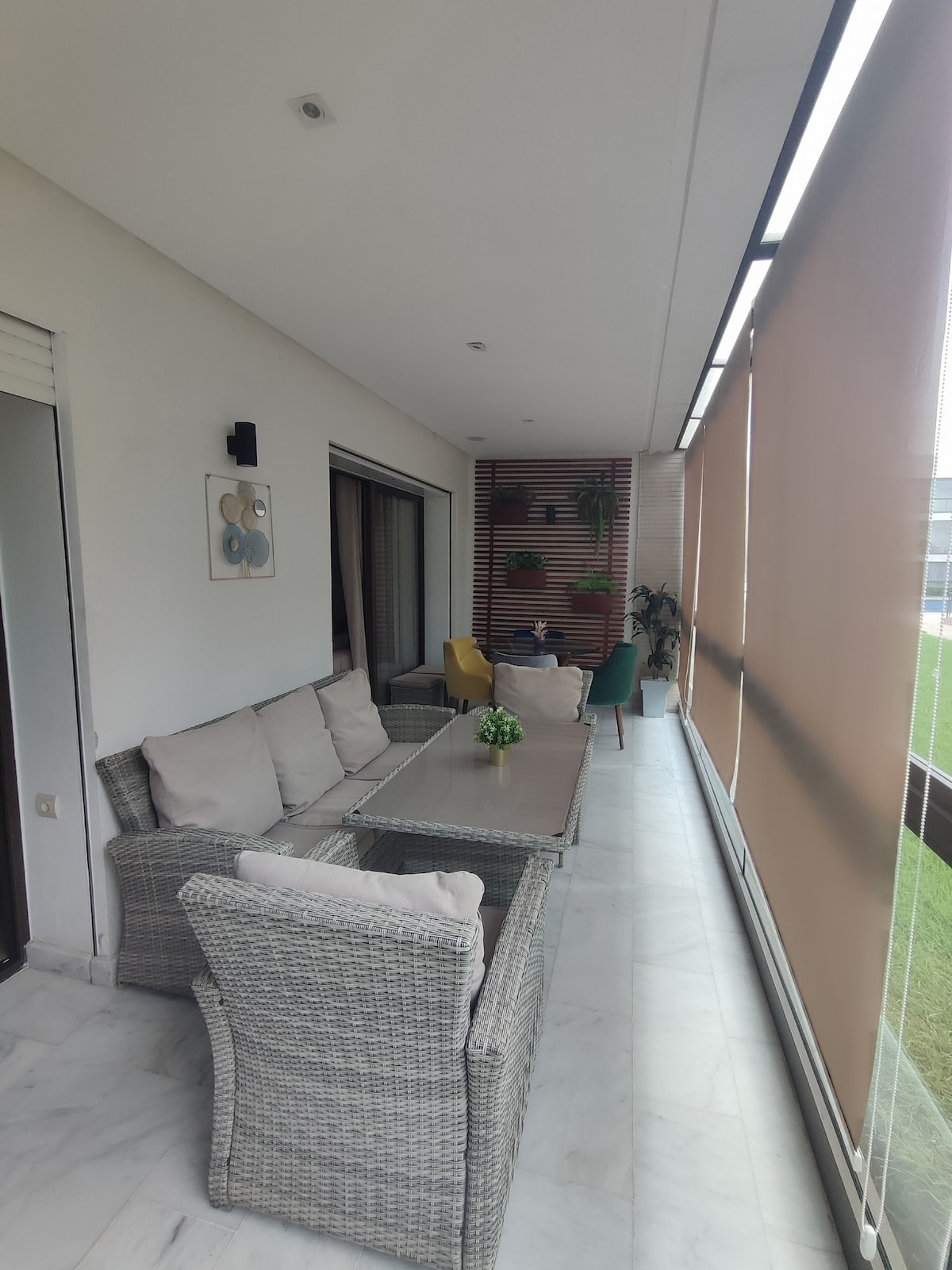 Escape to a chic and romantic retreat in Sidi Rahal 🌊. This bright apartment features a cozy living room, elegant bedroom, two bathrooms, a fully equipped kitchen, and a spacious balcony with breathtaking sea views 🌅. Located in a gated residence just 5 minutes from the center. • Swimming pool 🏊, sports courts 🎾, direct beach access 🏖️ • Air conditioning, Wi-Fi, TV 📺