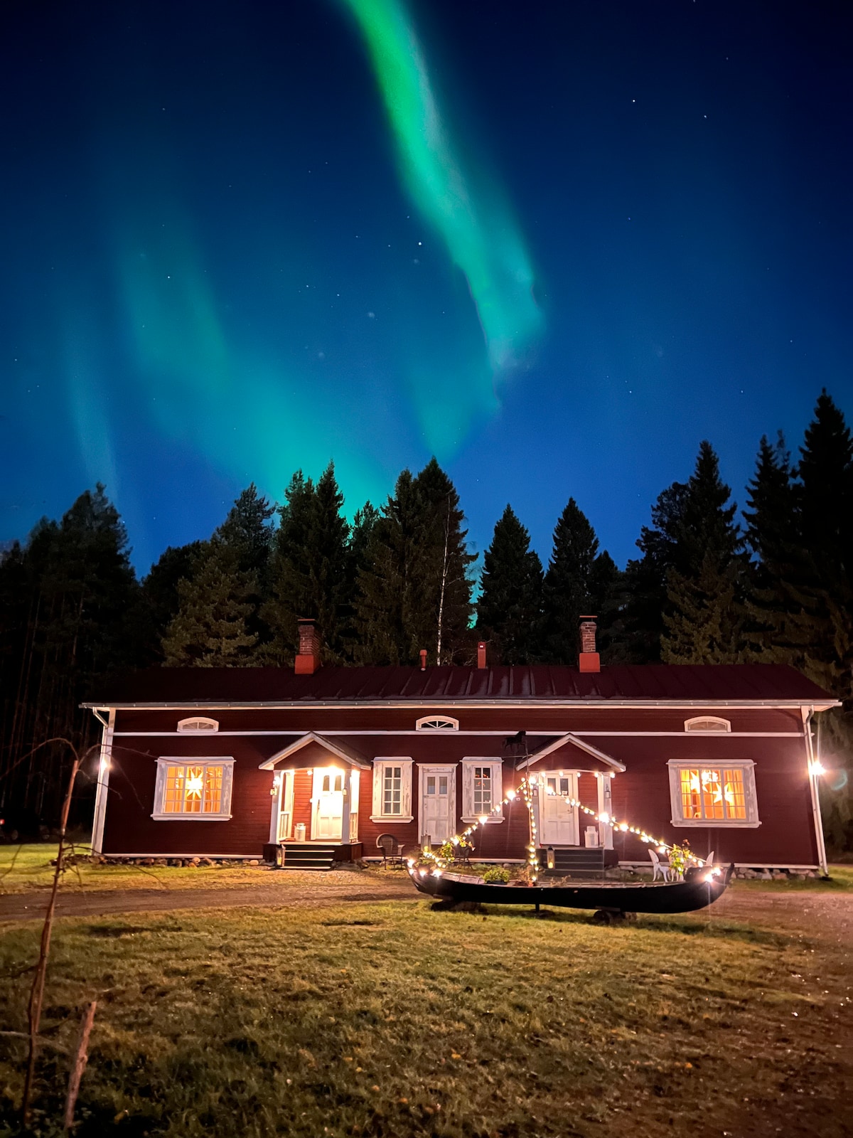 An open space red chalet with an immense Nature river view from your own reclinable bed. Take a walk in the marvellous Rokua UNESCO landscape, indulge in the hot tub gazing at the stars or Auroras and the boreal forest. Relax in your private sauna, rest by the fireplace, dine with river views. All from the comfort of your private chalet. Breakfast and half boards available. Complete your stay with our seasonal experiences and activities. Visitors and parties not allowed