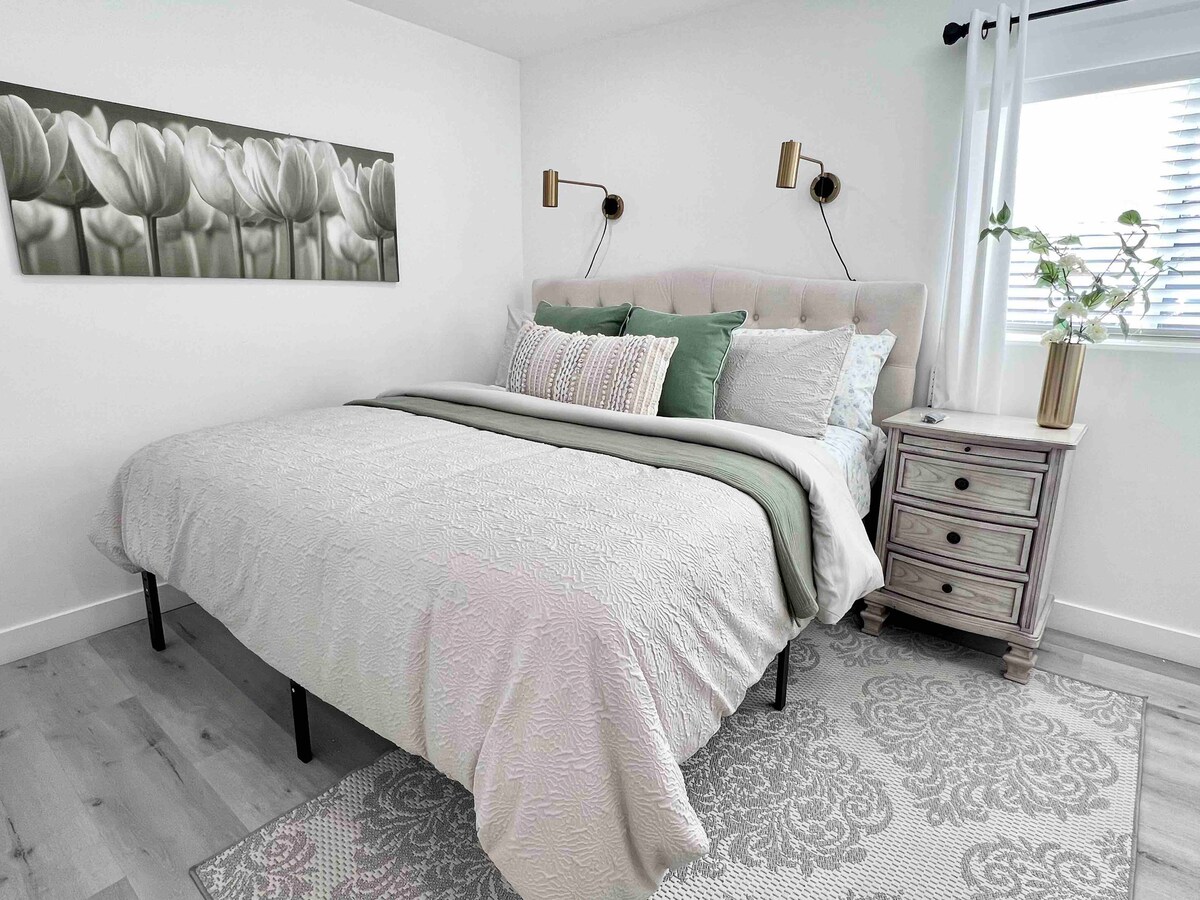 Welcome to this little gem. Our beautiful centrally located 1 bedroom guesthouse has vaulted ceilings, full size kitchen, spacious living room (optional additional queen bed) and a gorgeous bathroom. This modern 500 sq. ft. place is ALL yours to enjoy! Relax, have a cup of pour-over coffee, tea, or any of the Keurig varieties. Enjoy the many Roku selections like Disney+/Apple TV/Hulu/Amazon/Netflix/HBO Max and more. Short walk to the community pools/basketball/tennis/volleyball, and BBQ areas.