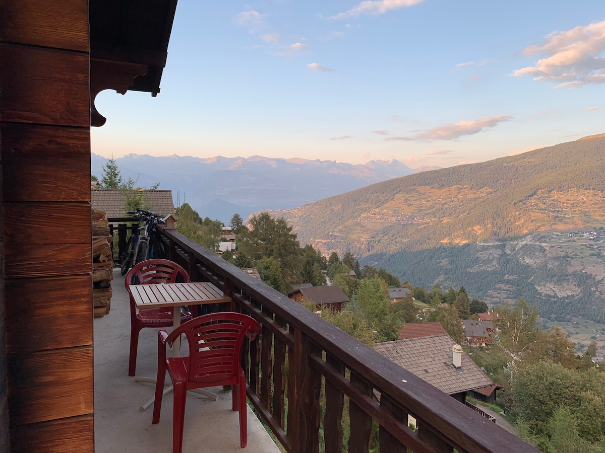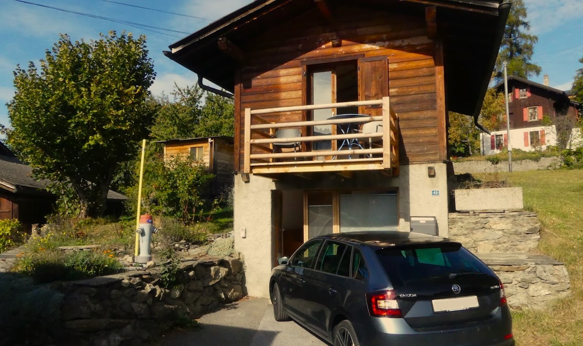 This small, private Swiss chalet is cozy comfortable retreat for one or two persons. The balcony offers a magnificent view of the Rhone Valley and Swiss Alps of Valais. Ideal for nature-lovers or those who simply want to just get away to relax and breathe in the Swiss mountain air. The chalet acts a point of depart for mountain walks or hikes, bike riding, snowshoeing or even cross country skiing in the winter time. Ski slopes and thermal baths can be reached in around 30 minutes by car.