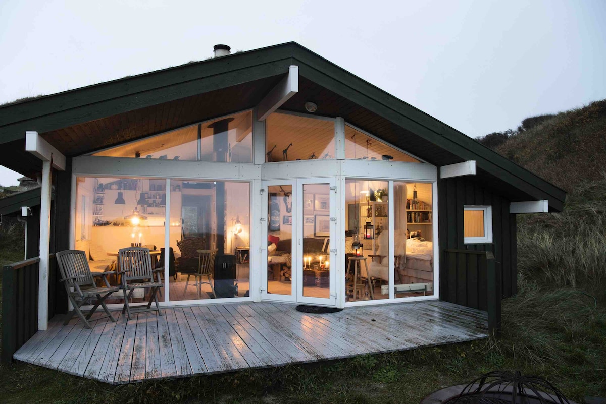 The cottage is located on the West Coast within walking distance to the beach, dune plantation and the cozy beach town Tversted. The house - which is year-round insulated is located on a large 3000 m2 of undisturbed land with views of large protected natural areas. The cottage is fenced - with a large area, and you can therefore let your dog run free. NOTE: From May to August, the tent is open and there is therefore the possibility of 8 overnight guests. See profile at insta: tverstedhus