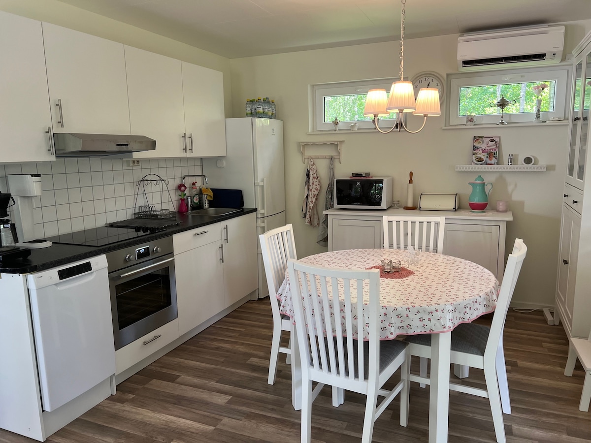Newly built, fresh cottage with nature plot. The proximity to wilderness and adventure, but peace and quiet at the accommodation is the winning combination. Cleaning/linens included. Activities in the cottage area for tenants (all free) are: large/small pool in the summer, mini golf, tennis, petanque, playground and soccer field. A beautiful walking loop runs within the association's grounds. 5 minutes' drive away is fantastic Söderåsen with national park, hiking, biking, horseback riding, golf, moose park, mushroom picking, paddling etc. Welcome!