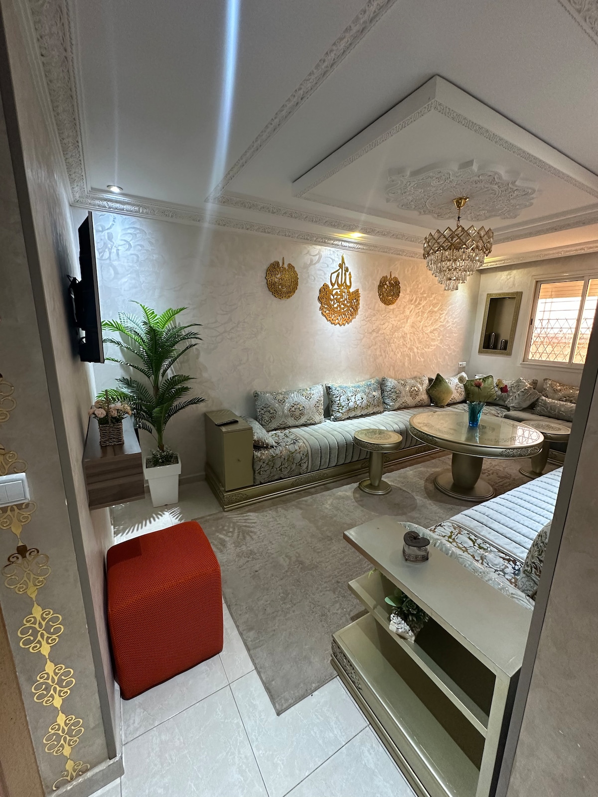 Welcome to your safe haven in Skhirate! This freshly renovated apartment offers a perfect balance of comfort, convenience, and coastal charm. 💎Why a rare pearl? ✨ New & Modern Interior Fibre optic🛜 internet 🅿️ Free Parking. 24-hour 🛡️ security - 7 days a week. Clean 🏢 building & Maintained property. Great 📍 location: 15 🏙️ mins from Rabat. 5 🏖️ Minutes by car from Skhirat Beach. 3 🛍️ Minutes away at Pied des Commerces. 🍽️ Nearby restaurants and coffee shops.