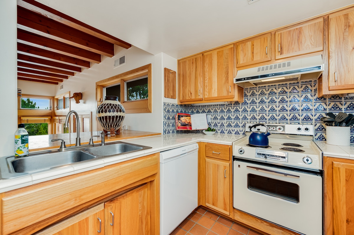 Welcome to your home away from home! Peaceful, spacious, (2100 sqft) private home on secluded 5 acre compound in beautiful Tesuque. Conveniently located just 9 miles from downtown Santa Fe. This beautiful adobe home has two large bedrooms, two bathrooms, and a fully stocked open concept kitchen. The home exudes Santa Fe charm with vigas throughout, Saltillo tile, functional kiva fireplace, and ample windows for natural lighting. Private outdoor patio and access to breathtaking views from gazebo