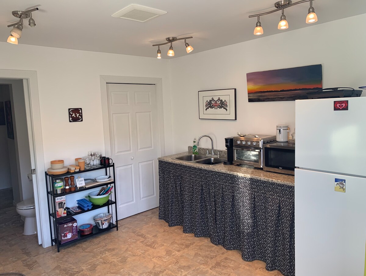 Nestled in the raw, breathtaking beauty of Haida Gwaii, in Daaging Giids, our newly build home stands as a peaceful sanctuary shaped by the rhythms of the land and sea. Thoughtfully designed and furnished, every detail reflects a deep respect for our guests and for the surrounding wilderness. Minutes from towering cedars, or the beach. This suite is not just built, but rooted -crafted to offer comfort, inspiration, and a quiet sense of belonging in one of the most soulful places on earth.